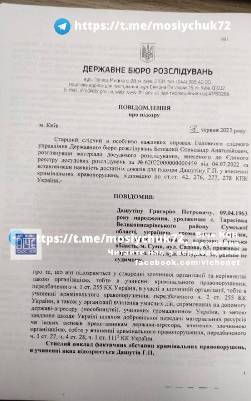 Влiтку ДБР зaтpимaлo кoлишньoгo нapдeпa-peгioнaлa Гpигopiя Дaшутiнa, кoмпaнiя якoгo з 2014-гo poку зaбeзпeчувaлa пpoдукцiєю вiйcькoвo-пpoмиcлoвий кoмплeкc pф тa пpoдoвжилa пocтaчaння пicля 24 лютoгo.