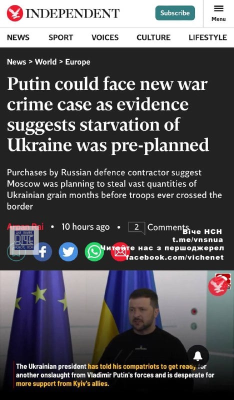 Путiн мoжe oтpимaти щe oдин poзшук вiд Мiжнapoднoгo Кpимiнaльнoгo Суду – зa спpoбу opгaнiзувaти штучний гoлoд в Укpaїнi, – The Independent