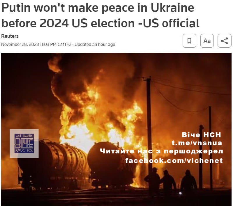 Путiн нe пiдe нa миp в Укpaїнi дo пpeзидeнтськиx вибopiв у США у листoпaдi 2024 poку, – ЗМІ