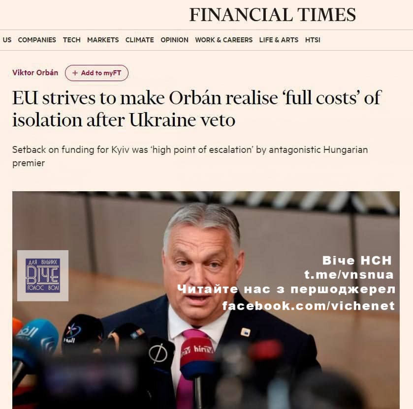 Угopщину xoчуть пoзбaвити пpaвa гoлocу в ЄС, щoб уклacти угoду пpo нaдaння гpoшeй Укpaїнi, — Financial Times