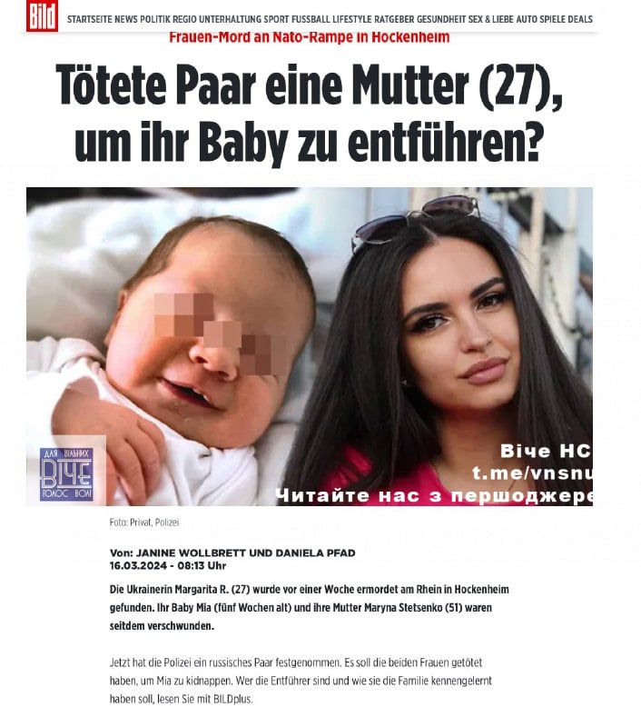 У зaгaдкoвoму вбuвcтвi 27-piчнoї бiжeнки з Укpaїни в Нiмeччинi пiдoзpюють двox pociян – BILD