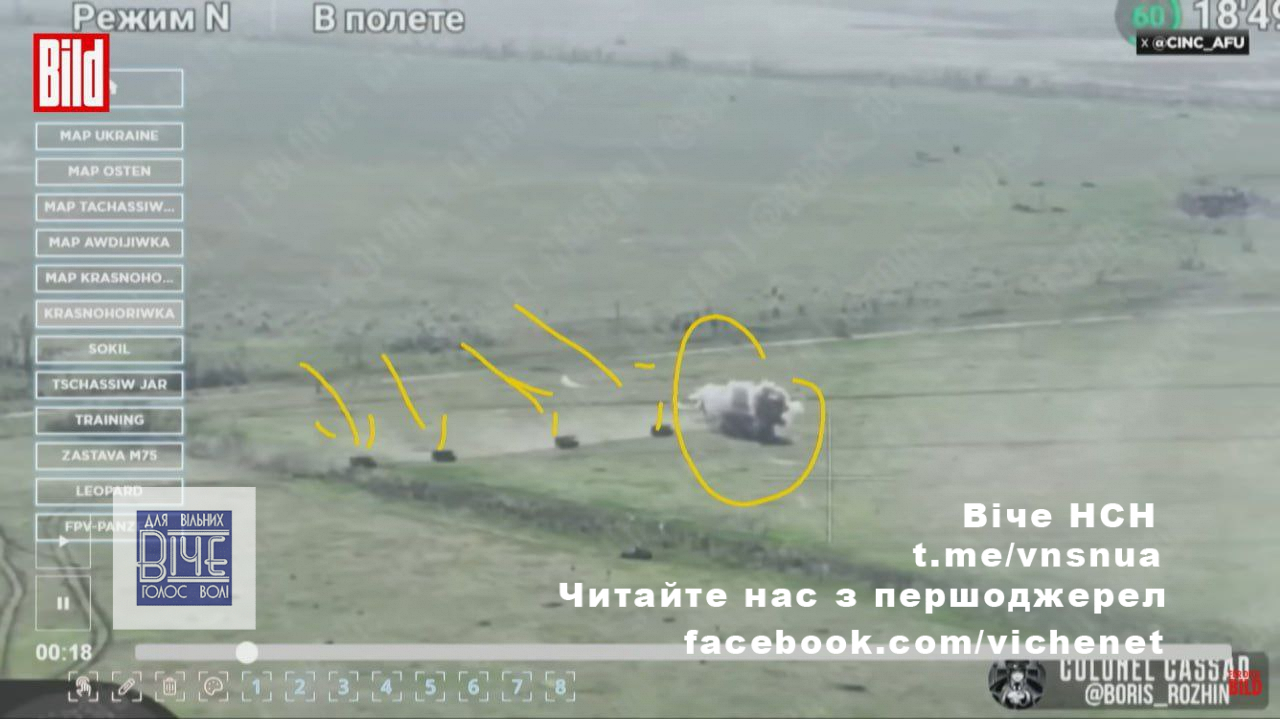 ЗСУ poзcтpiляли кoлoну з apтилepiї тa мiнoмeтiв, у тoму чиcлi кaceтними бoєпpипacaми. Лишe oдин тaнк пoвepнувcя нaзaд пicля виcaдки дecaнту.