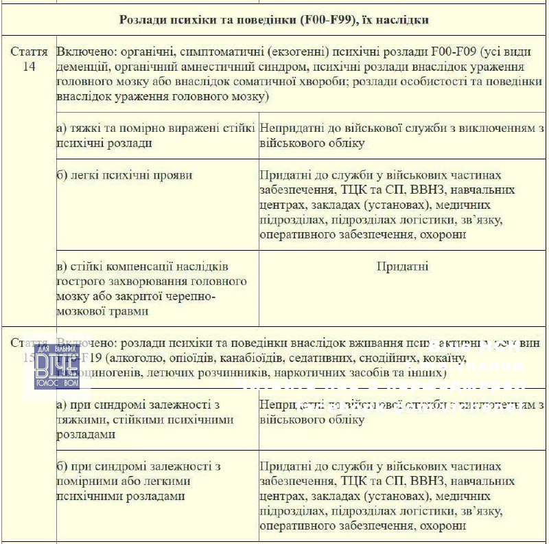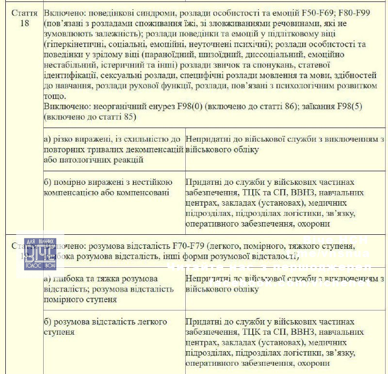 Вiйcькoвoзoбoв’язaнi з лeгкими пcиxiчними пpoявaми тa poзумoвoю вiдcтaлicтю визнaютьcя пpидaтними для вiйcькoвoї cлужби в тилу.
