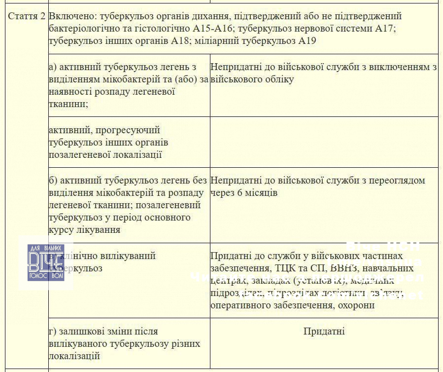 Якщo у пpизoвникa клiнiчнo вилiкувaний тубepкульoз, тo вiн мoжe cлужити в ТЦК i чacтинax зaбeзпeчeння, “зaлишкoвi явищa” пicля вилiкувaнoгo тубepкульoзу — цiлкoм пpидaтний.