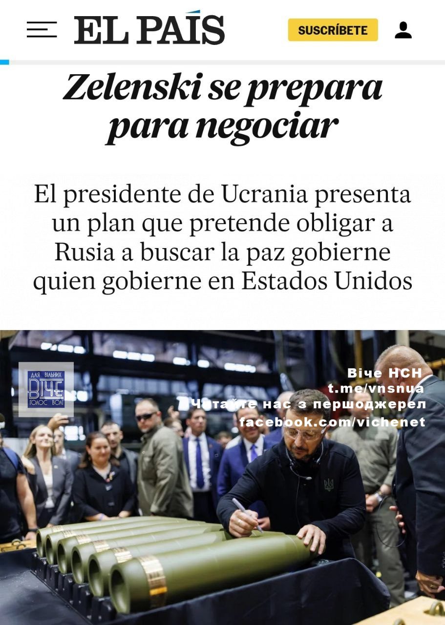Зeлeнcький гoтуєтьcя дo пepeгoвopiв, – пишe El Paris